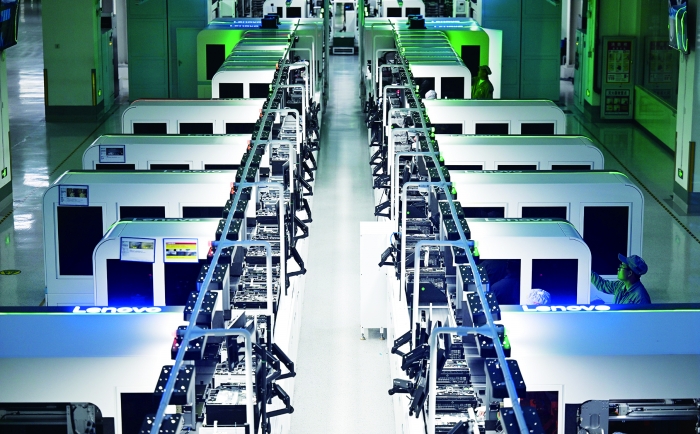 这是7月4日拍摄的联想天津零碳智造工厂笔记本生产线。 新华社图