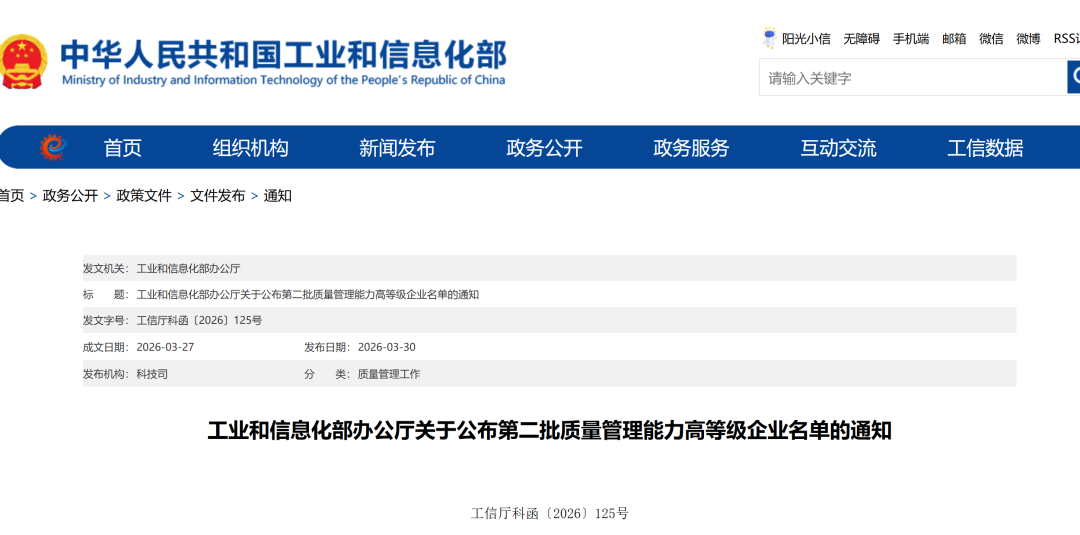 近日,工业和信息化部公布第二批质量管理能力高等级企业名单,161家企业上榜,湖北2家企业入选。